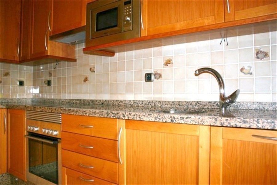 На первом этаже - оборудованная кухня, гостиная с террасой и туалет.