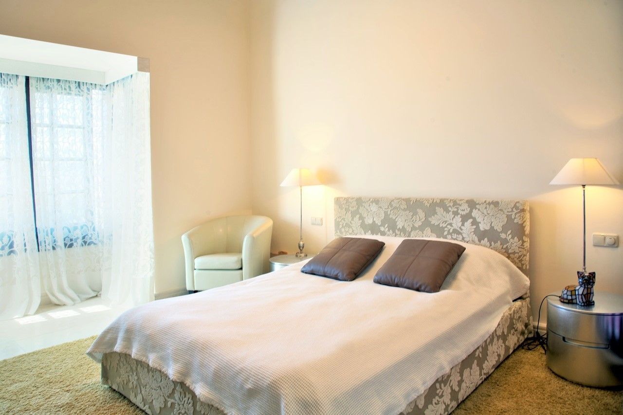 К столовой прилегает полностью оборудованная современная кухня оснащенная бытовой электротехникой фирмы Miele и Bosch. Рядом с кухней находится спальня с ванной комнатой, которая идеально подходит в качестве жилья для обслуживающего персонала. Справа от гостиной есть еще две спальни с ванными комнатами, и одна с прилегающей гостиной. Гостевой туалет и кабинет, который в настоящее время используется как спальня, завершают этот уровень.