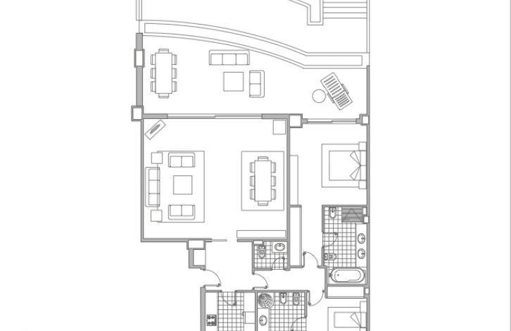 Характеристика: площадь 196 м2, большая терраса, просторный салон, две спальни , две ванных комнаты, гостевой туалет, полностью обставленная кухня, подсобное помещение. Подземная парковка, кладовая.