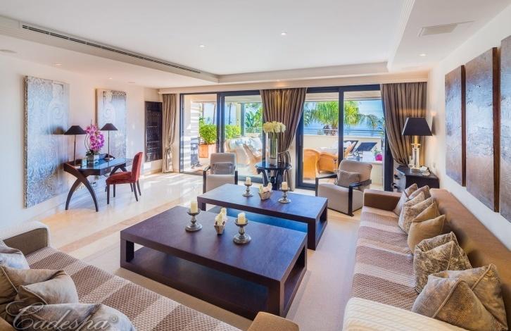 Двухэтажная квартира в комплексе на первой линии моря на Золотой Миле Марбельи.