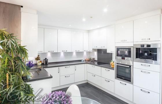 Общая площадь 400 кв.м. Три этажа. 3 спальни, 3 ванны, гостевой туалет, салон-столовая, экипированная кухня, общая площадь терраса 180 кв.м.