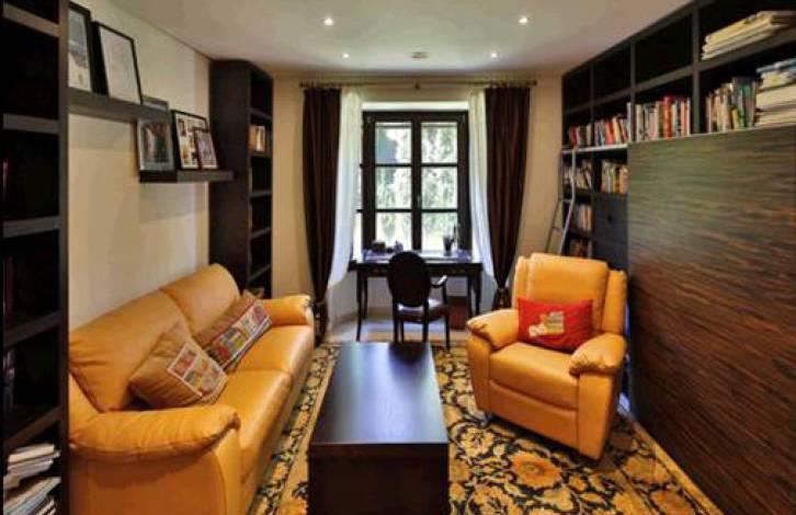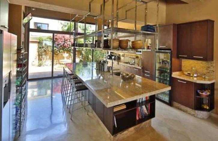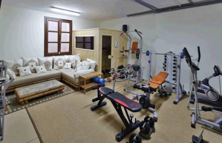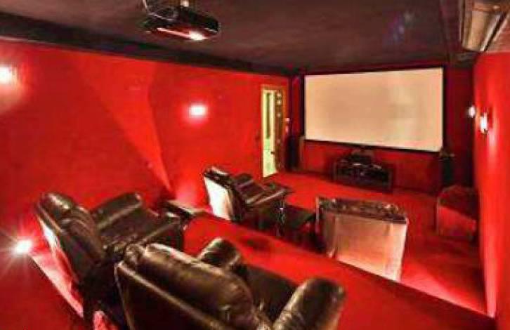 На нижнем этаже есть большой игровой зал, кинозал, винный погреб, тренажерный зал с сауной, 1 спальня, 1 ванная комната и гараж на 6 автомобилей.