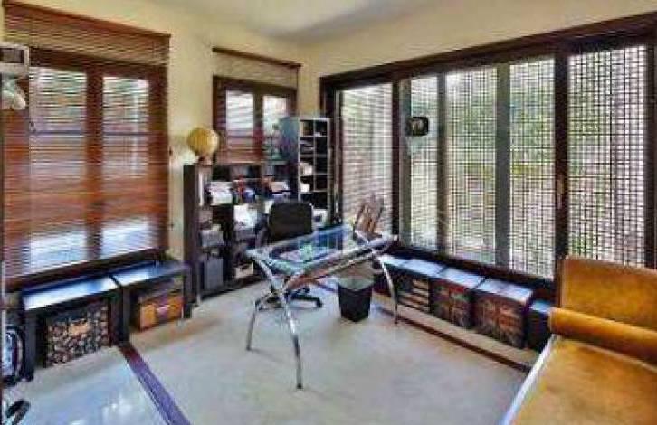 Восьмигранная прихожая, ведущая в другую комнату, включая гостиную с камином, библиотека-кабинет, который может быть легко перестроен в спальню, а удивительный современный кухня открытого плана, которая ведет к большой гостиной-столовой, гостевой туалет и офис.