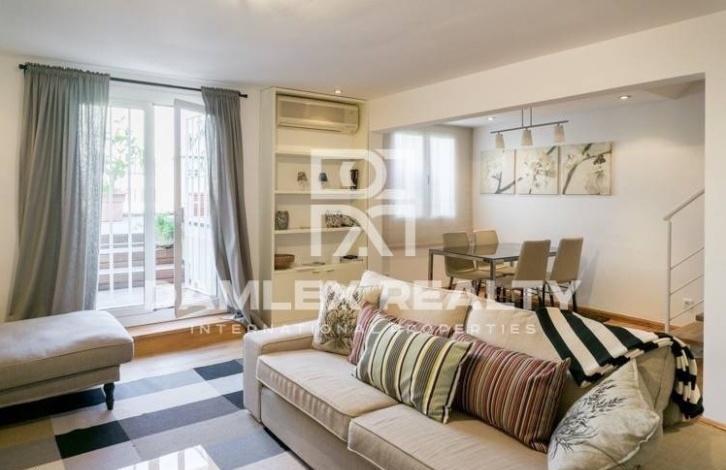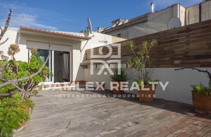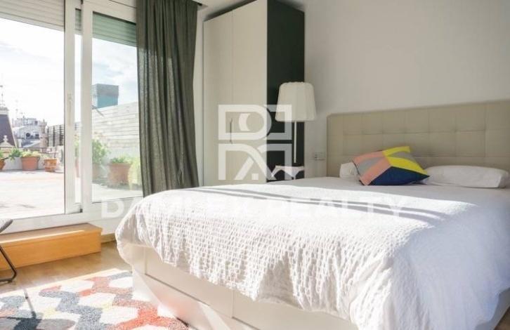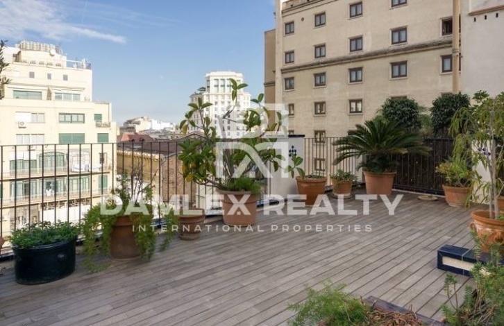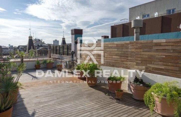 Уникальный пентхаус с двумя этажами, расположен на улице Рамбла Каталуния. На первом этаже находится гостиная, кухня, 2 спальни и две ванные комнаты. Есть выход на террасу 27м2 из гостиной. Так же на этом этаже расположена прачечная комната со своей собственной террасой. На втором этаже находится большая спальня с собственной ванной комнатой и выходом на террасу 35м2 с видом на город. Квартира имеет площадь 140 м2 и 62 м2 площадь террас.Квартира находится всего в 3 минутах ходьбы от площади Каталонии в самом центе Барселоны в районе Эшампле, где превалируют здания в стиле модерн, в частности, несколько работ Антонио Гауди: Casa Batllo и Ла Педрера. В районе есть магазины, а также рынки, рестораны, гостиницы, кинотеатры, остановки общественного транспорта, станции метро.