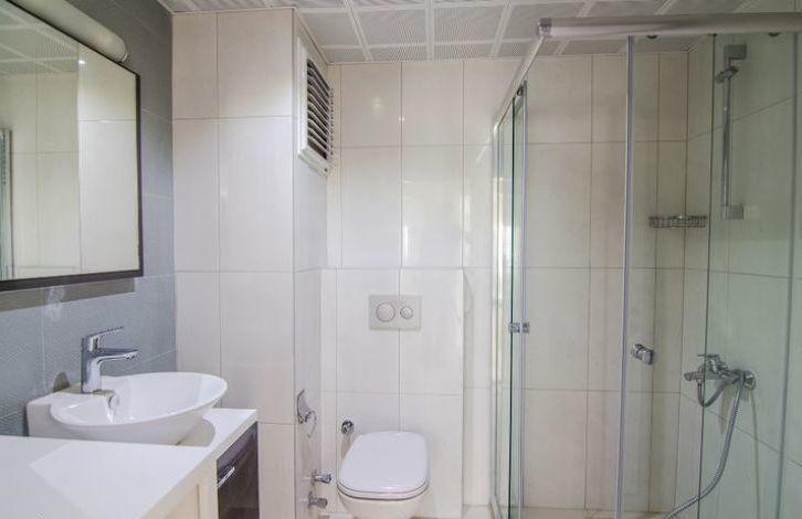 - В ванной комнате шкаф и душевая кабина