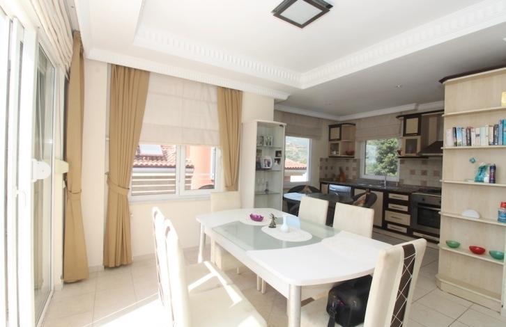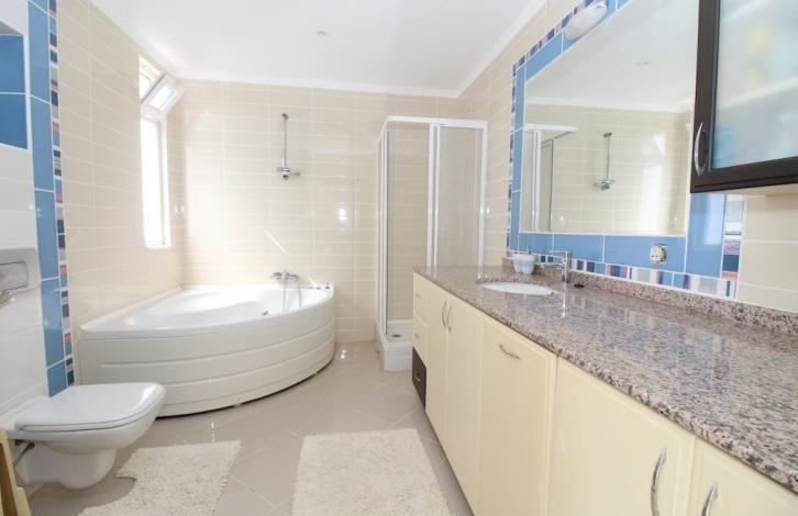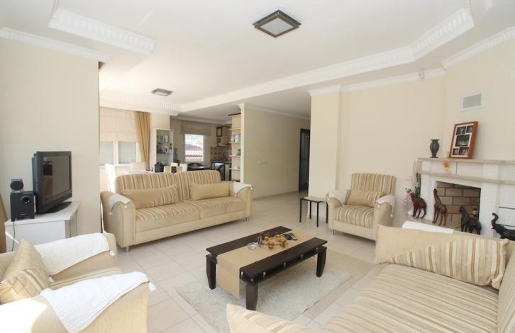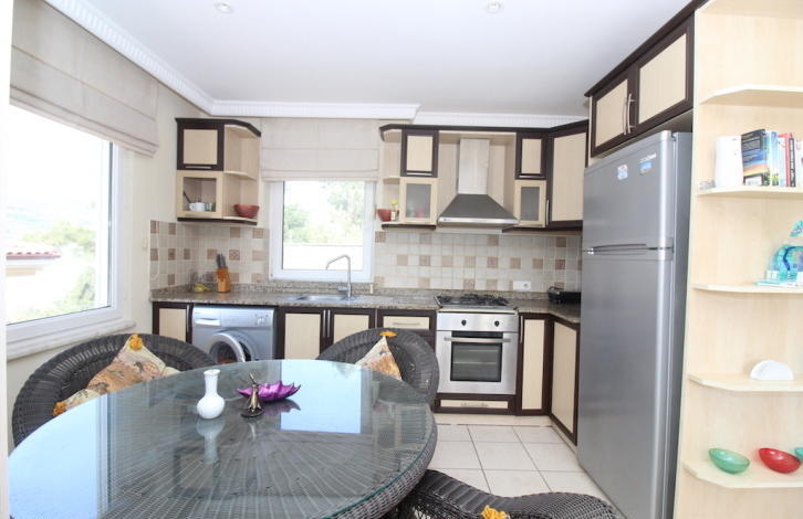 Вилла 4+1, общей площадью 210 м2, планировка включает в себя: прихожую, гостиную совмещенную с кухонной зоной, 3 ванных комнаты, 4 спальные комнаты, 2 балкона и террасу. Вилла продается полностью меблированная и оборудована бытовой техникой, в каждой комнате установлены кондиционеры. Окна виллы смотрят на юго-запад.