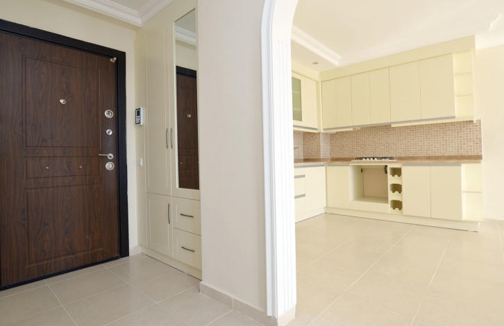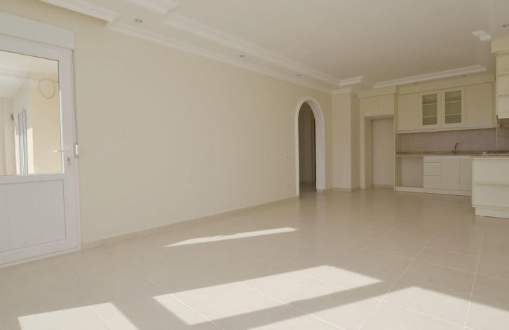 Квартира полностью Южная, расположена на 8 этаже, благодаря чему из нее открывается красивый вид на море и окресности Махмутлара. Квартира новая, в ней никто не жил. Общая площадь квартиры 104 м²: гостиная со встроенной кухней, две спальни, балкон, две ванных комнаты.