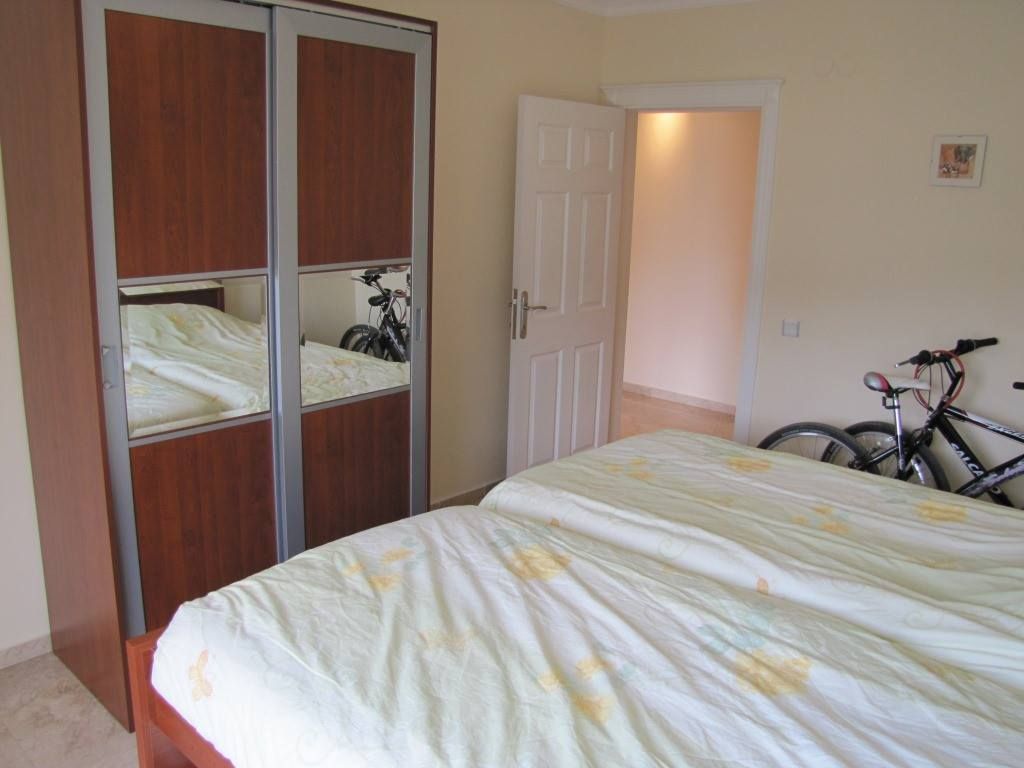 В районе Алании Джикджилли на продажу от собственника выставлены апартаменты с двумя спальнями по невысокой цене. Квартира продается полностью меблированной, с бытовой техникой, кондиционерами, сантехникой и всем необходимым для комфортной жизни. Общая площадь апартаментов, находящихся на третьем этаже, 125 м кв. Квартира состоит из салона, совмещенного с кухней, двух спален, двух санузлов и двух балконов. Квартира уютная и обжитая, обладает хорошими видовыми характеристиками. Вам будет приятно проводить время на огромном балконе, наслаждаясь панорамой на горы и бассейн.