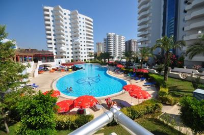 Включает:- гостиная с кухней- 3 спальни- ванная комната (с душем)Квартира новая, свежий ремонт, кондиционер, кухонные и банные принадлежности. Имеет вид на море. Расположена на 3 этаже. Красивый, чистый подъезд, приличные соседи. Квартира идеальна для аренды в любое время года, т.к. в 50 м от дома имеется уютный пляж! А также: супермаркеты, дет. сады и школы, детские и спорт площадки, салоны красоты, рестораны и кафе. Остановки автобусов в направлении аэропорта и центра.