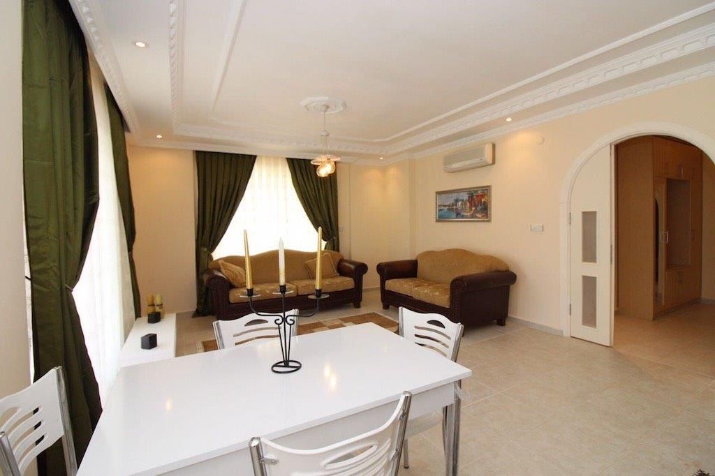 На продажу выставлена отличная квартира в Махмутларе. Квартира планировкой 2+1, площадь 120 кв.м., состоит из просторной и светлой гостиной с кухней открытого типа, двух спален, двух совмещенных санузлов, двух балконов и прихожей. Квартира в отличном состоянии, полностью готова к проживанию, обставлена мебелью хорошего качестка и оснащена всей необходимой техникой. Нахадится на 4 этаже, выходит на северо- восточную стороны света.