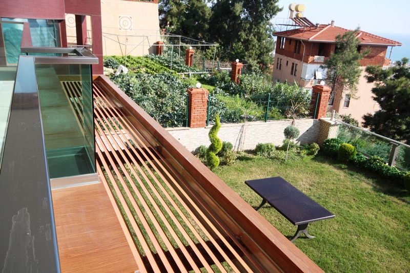 Планировка виллы подразумевает 5 спален, гостиную, кухню, 2 ванные комнаты, 1 санузел, балкон, террасы, просторный сад.