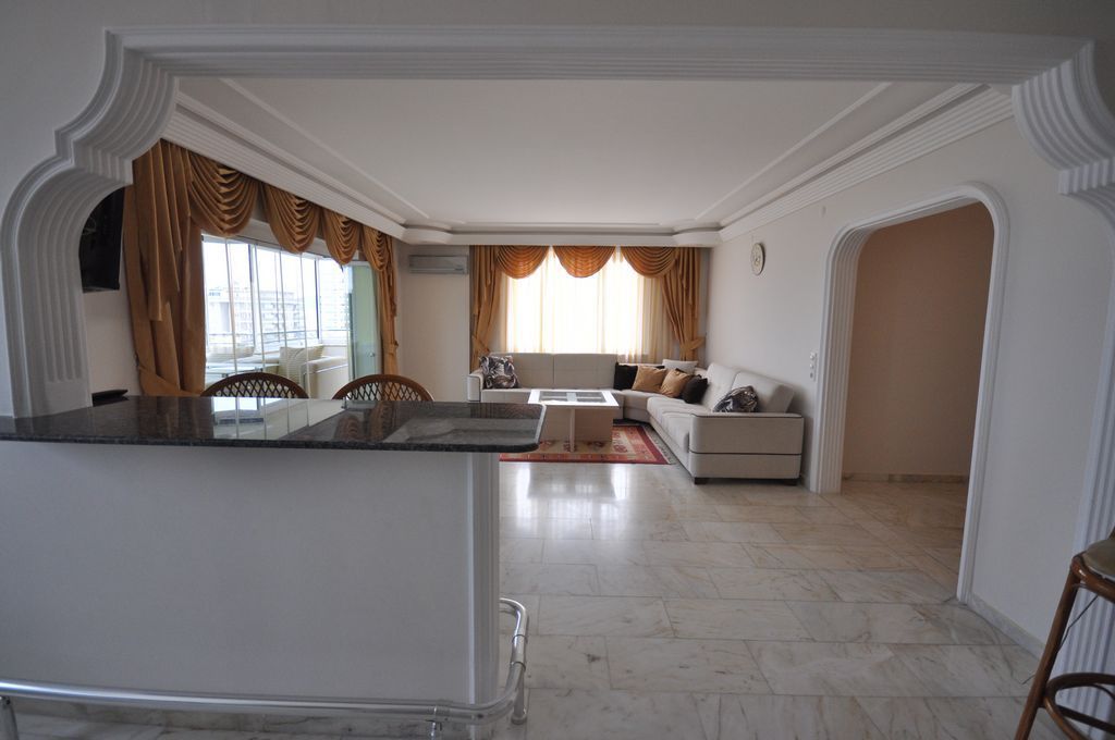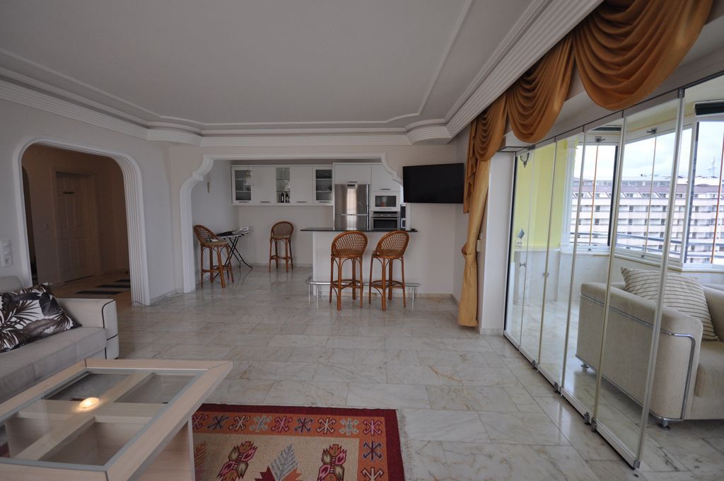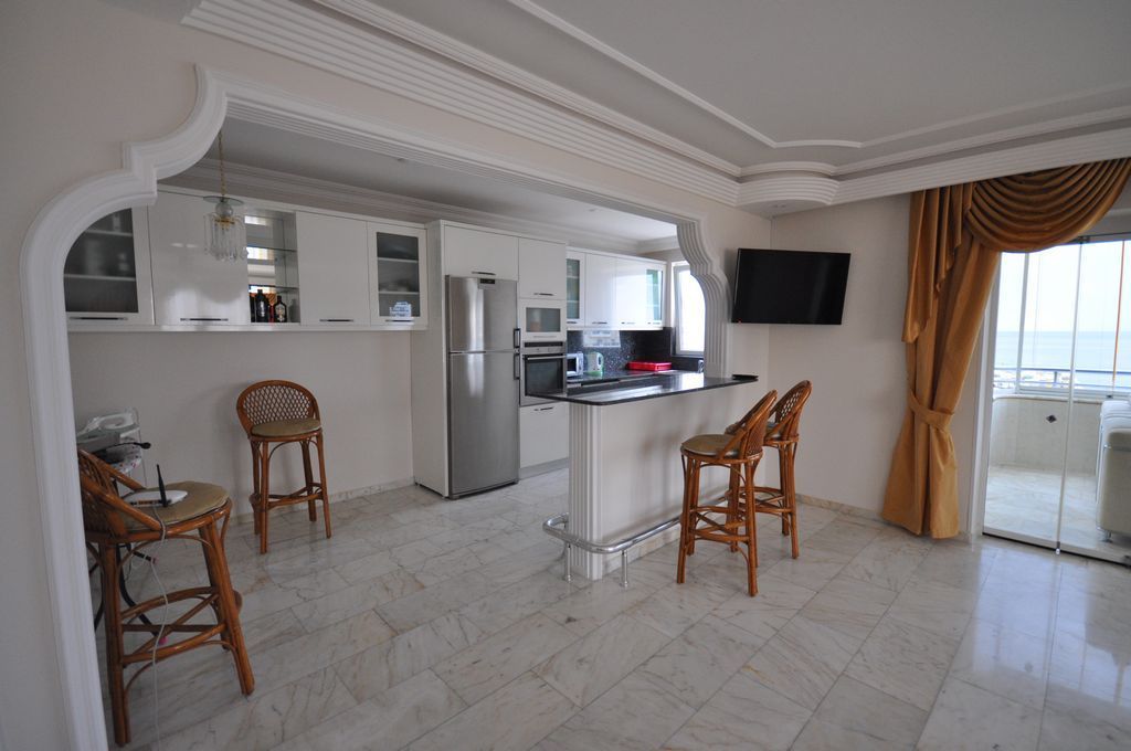 Продается трехкомнатная квартира с чудесным видом на море в центре курорта Махмутлар в Алании. Площадь квартиры 135 кв.м., 2 спальни, 1 гостиная совмещенная с кухней. Фасад квартиры обращен на юго-западную сторону с красивым видом на море и горы. Квартира находится на 9 ом этаже. Мебель и бытовая техника включена в стоимость. Все необходимые супермаркеты, магазины, общественный транспорт, рынок, банки находятся в шаговой доступности. Комплекс имеет развитую инфраструктуру. Удаленность от моря всего 100 метров.