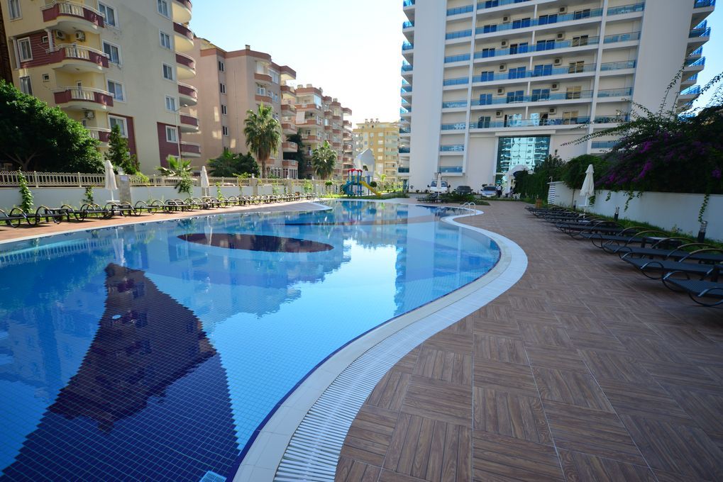 Продается квартира 1+1 в комплексе класса люкс близко к морю в Махмутларе в Алании. Уникальный комплекс с очень развитой инфраструктурой расположен всего в 200 метрах от пляжа. Имеется подземный переход к пляжу. В комплексе открытый плавательный бассейн с аквагорками, крытый плавательный бассейн, турецкая баня, сауна, парная, массажные комнаты, фитнес зал, кинотеатр, детский мини клуб, детская площадка, парковка, консьерж, охранник. Квартира находится на 7 -ом этаже 12 ти этажного нового дома. С балкона открывается чудесный вид на горы.