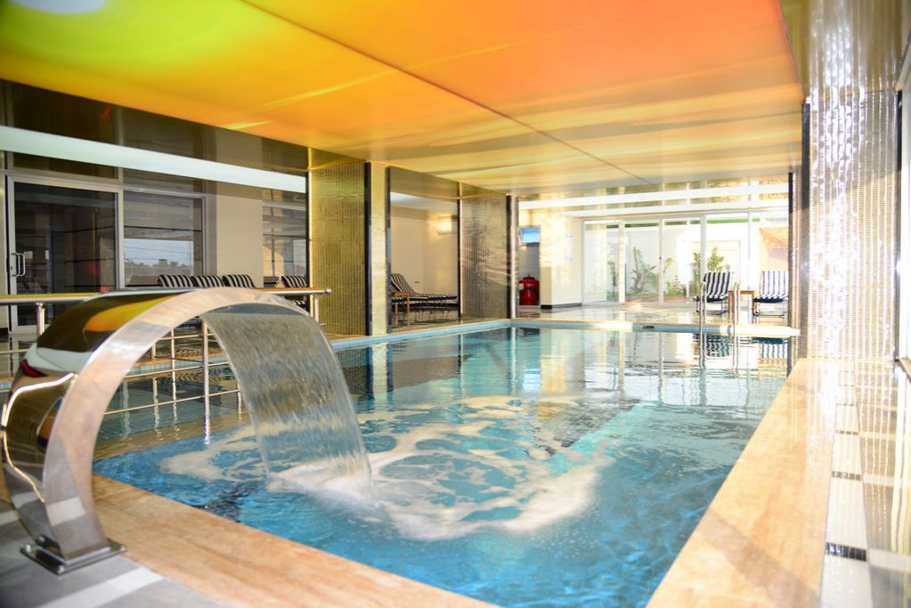 Открытый плавательный бассейн, крытый плавательный бассейн, аквапарк, детская игровая площадка, игровые шахматы в саду, теннисный корт, парковка, крытая автомобильная парковка, беседки для отдыха, бар у бассейна, спортивный зал, сауна, парная, женская и мужская раздевалки, душевые кабины, туалет на территории крытого и открытого бассейнов, Комната для переговоров, ТВ-зал и игровая комната, бильярд и настольный теннис, ресепшн, кладовые комнаты, сад, консьерж, центральная спутниковая система, система внутренней связи, электрогенератор, беспроводной интернет, 2 панорамных лифта.