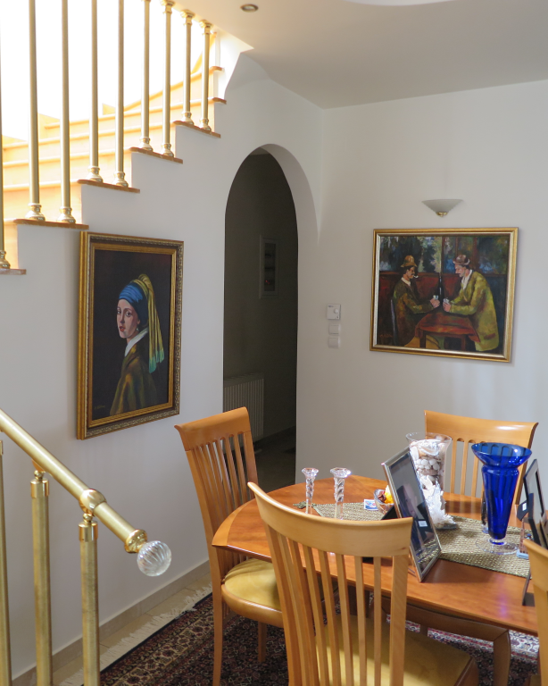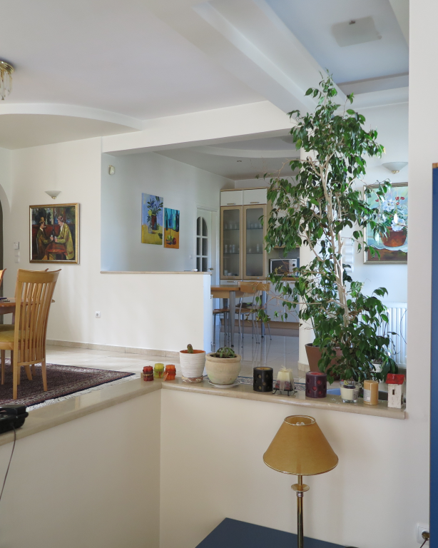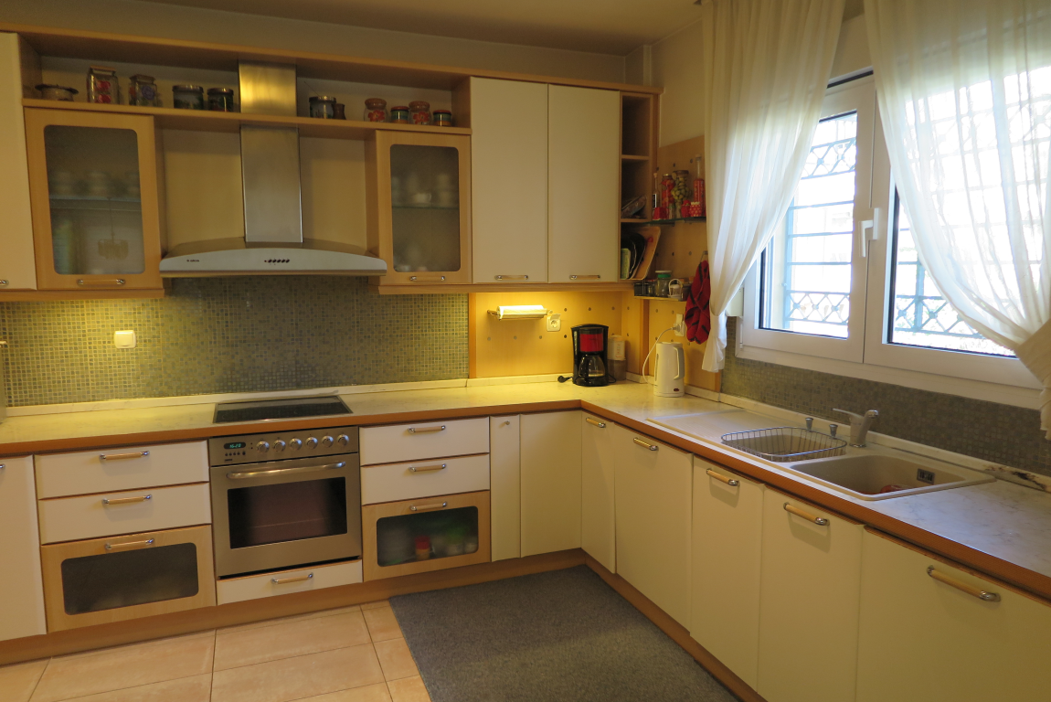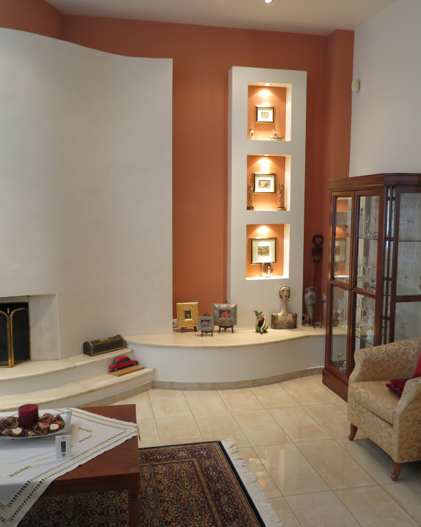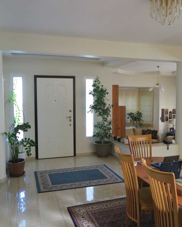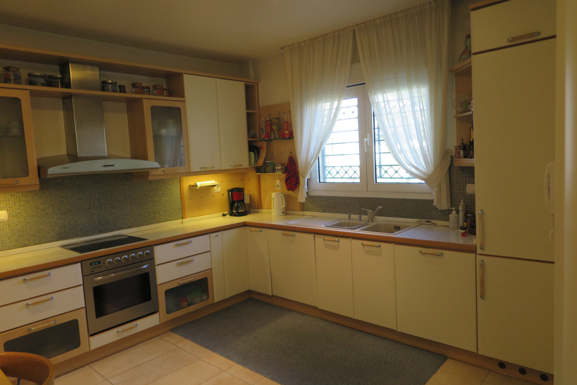 Вилла роскошного строительства и специальной архитектуры. Это уникальное свойство, построенное из качественных материалов как внутри, так и снаружи. Он состоит из 2-х этажного подвального помещения площадью 45 квадратных метров. Первый этаж 150 квадратных метров состоит из современной кухни, просторной столовой, светлой большой гостиной, гостевой дом с отдельным выходом в сад, туалет с душем и 2 складские помещения. На первом этаже есть гараж на 2 места с внутренней связью с основной зоной и складское помещение. На первом этаже 120 кв.м. есть 3 спальни, одна из которых имеет свой туалет с душевой кабиной, а также большую ванную комнату с гидромассажем, которая обслуживает другие комнаты. Также есть рабочий зал с сушилкой, гладильной доской и большим шкафом. Во всех номерах есть высококачественные шкафы итальянского происхождения. На 1-м этаже есть 2 балкона и прекрасная терраса площадью 85 кв.м. Входная дверь - это система безопасности и изоляционные рамы DORAL, также имеется камин со специальным дизайном и отопительной системой с двумя вариантами (центральное отопление, масло), трехэнергетический котел с солнечным коллектором, сигнализация, домофонный монитор и инфраструктура замкнутого контура. этаж первого этажа - керамический гранит, а лестница и 1-й этаж натурального дерева. В подвале есть котельная в независимом пространстве, большие шкафы и столы для хранения. Сад очень внимателен травы и деревьев, а также декоративных растений с автоматизированной системой полива. Корпус имеет сверхпрочную конструкцию с 14-сантиметровыми железными и садовыми и электрическими гаражными дверями с дистанционным управлением.
