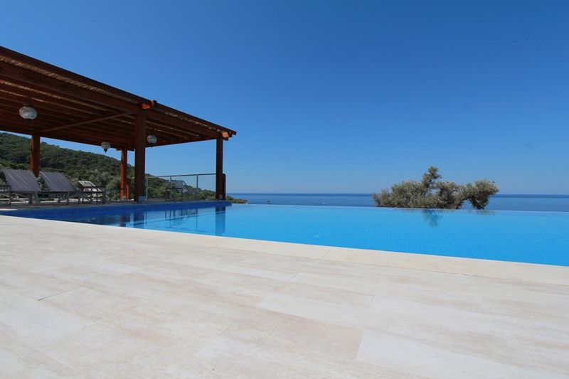 Вилла имеет 4 отдельных спален, каждая с ванной и гардеробной комнатой, просторная гостиная и отдельная кухня. Из окон открывается потрясающий панорамный вид на море. Отделка виллы выполнена из высококачественных строительных материалов. Окружена террасой с видом на голубую лагуну и пляж Олюдениз.