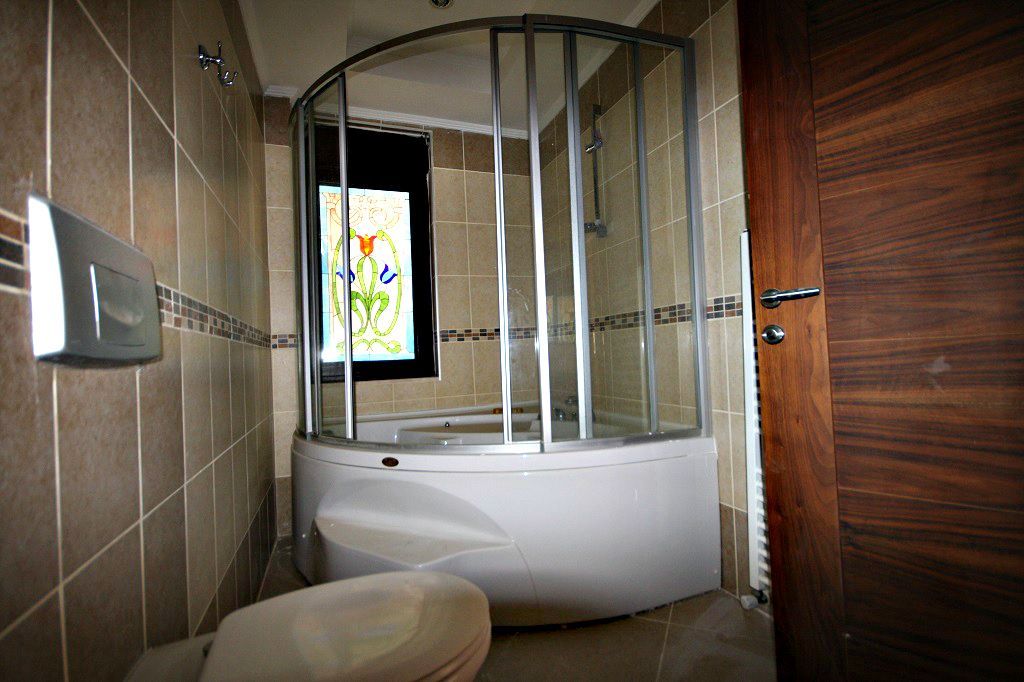 На 2 и 3 этажах по 2 спальни, 1 саузел с душевой кабиной и 1 с ванной.