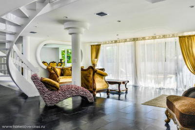 Этот дом имеет удивительное жизненное пространство, включая просторные гостиные с мраморным камином и большими панорамными окнами с прекрасным видом на сады и фонтан. Большая кухня-гостиная с баром. Имеется кабинет.